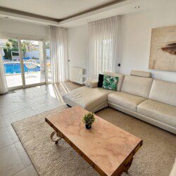 The villa comes with 5 bedrooms, 5 bathrooms, bed linen, towels, a flat-screen TV with satellite channels, a dining area, a fully equipped kitchen, and a terrace with sea views. The air-conditioned villa also offers a seating area, washing machine and 5 bathrooms with a bidet and a shower.